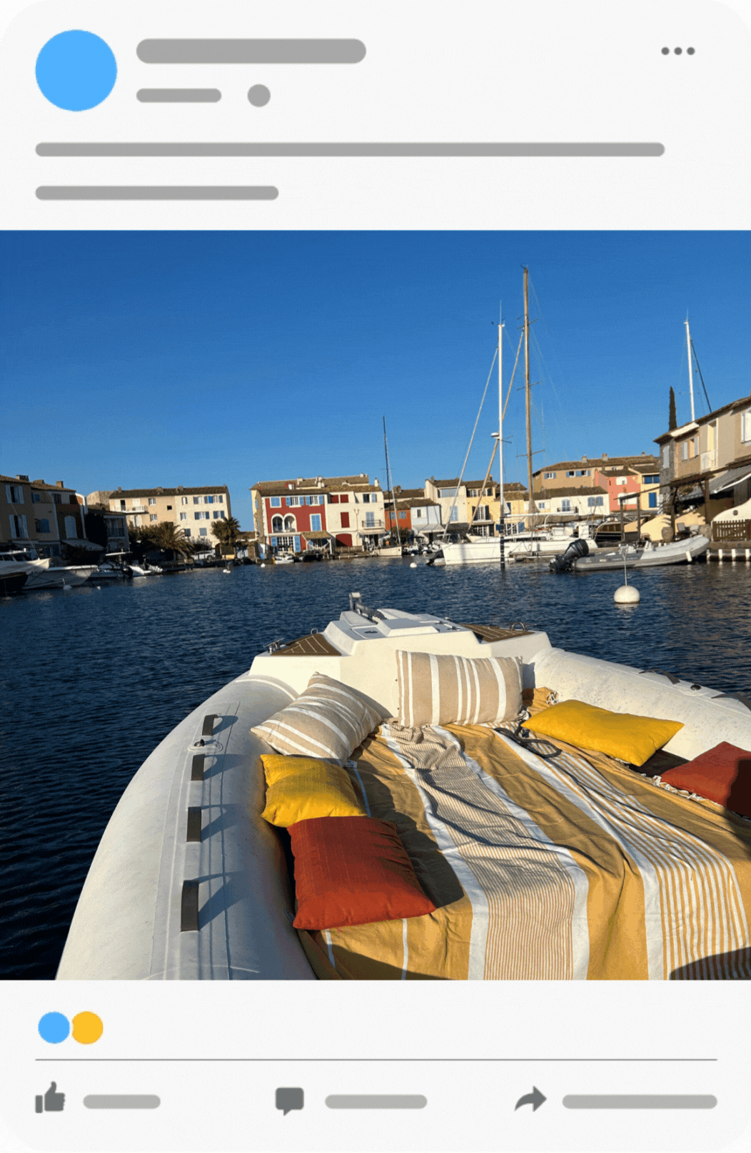 “Nous avons profité d’une offre spéciale bateau + voiture et c’était juste parfait. Luxe, confort, et flexibilité. Bleu Doré a rendu notre séjour à Saint-Tropez inoubliable. Merci à toute l’équipe !” — Julie & Karim, Bruxelles
